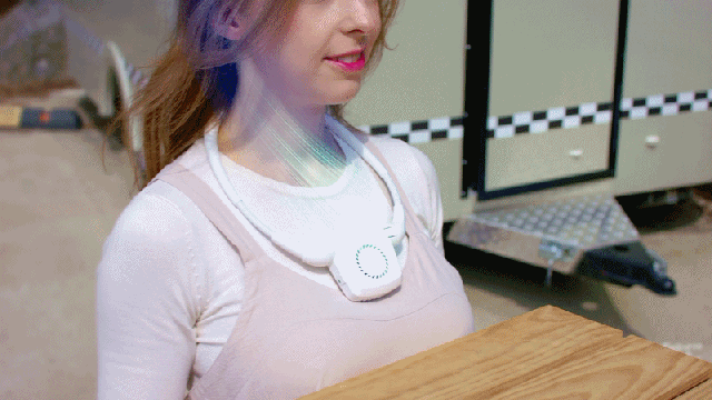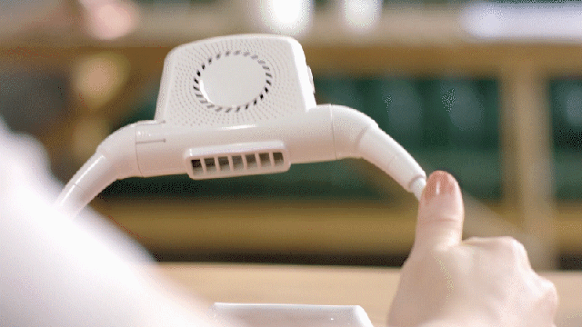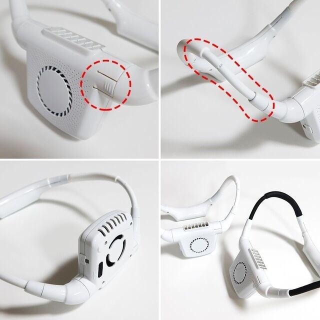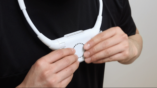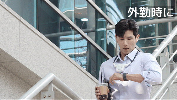 - ハンズフリーでお仕事をしながらも体に密着して風を当てられる。