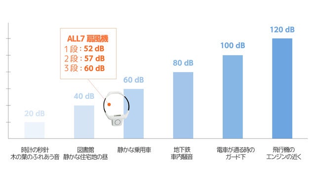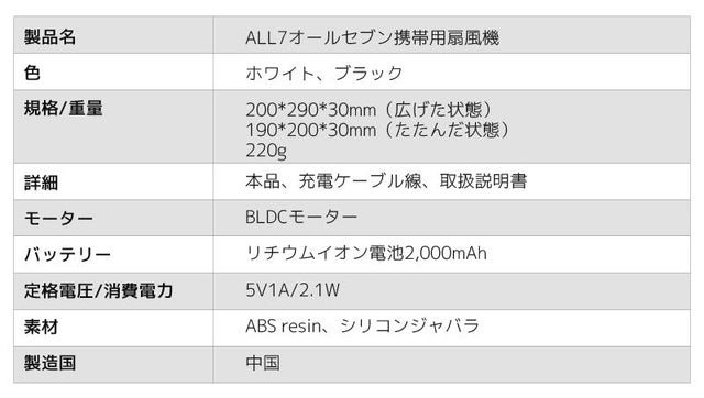 ALL7は従来の携帯用扇風機の中で、強力な風速を誇ります。