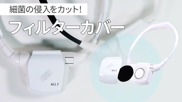 【早割】ALL7 首掛け扇風機+前面カバー+交換用フィルター10枚