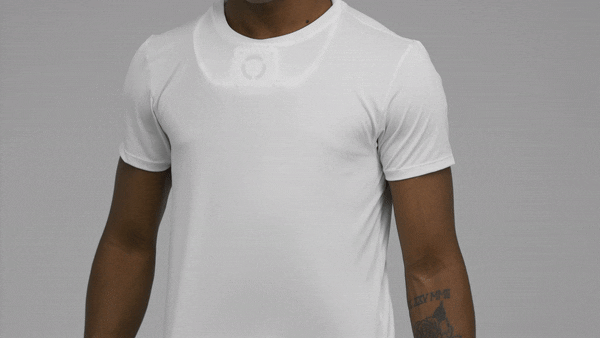 * ALL7着用後、Tシャツの中に入れた状態 + 本体方向を180度下にしたとき(船方向/3段から撮影)