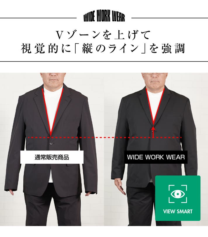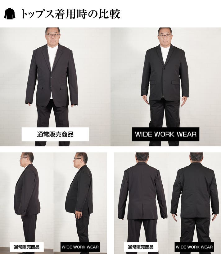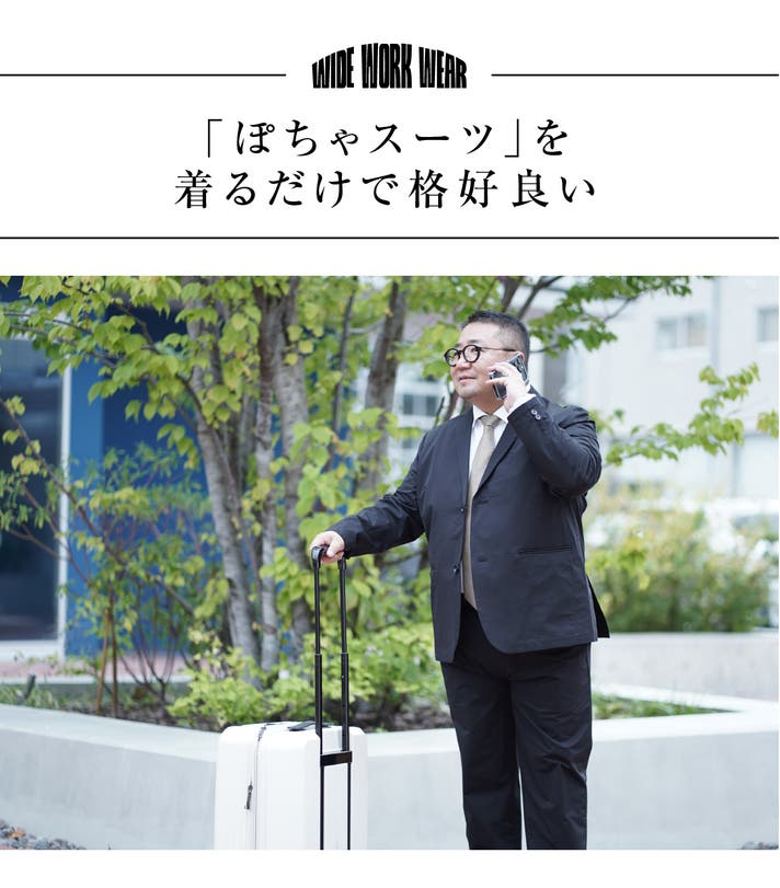 そんなコンセプトにフィットする「Wide Work Wear」のセットアップスーツを今回は、製作させていただきました。同じ悩みを持つ、全国の男性に、伝わったらうれしいです。