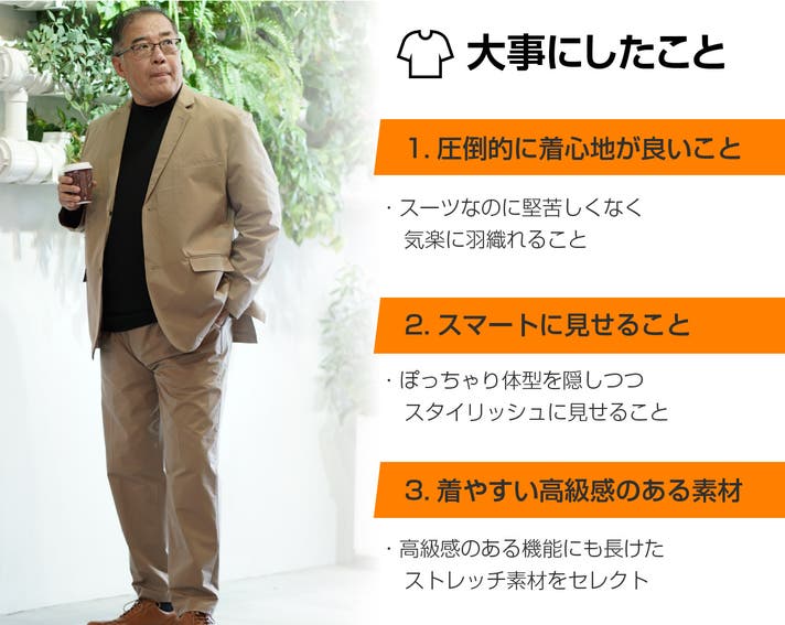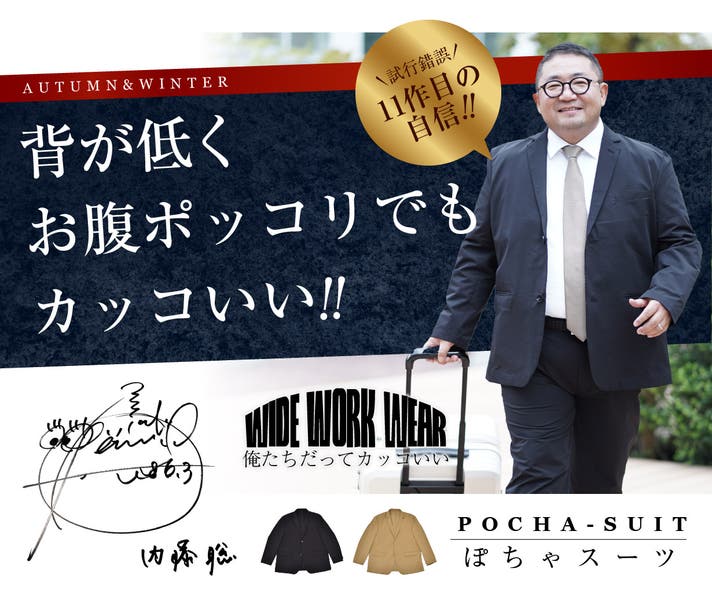 どんな体型の人もファッションを楽しんで欲しい!そんな「ぽちゃスーツ」に仕上がっています。ぜひファッションを楽しみましょう。