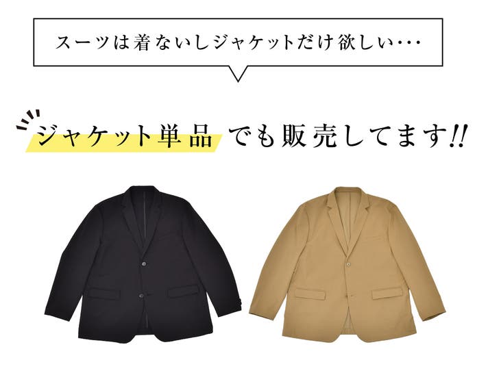 ジャケット単品でご案内させて頂いております。本当に着心地がよくスマートに見える1着に仕上がっています!過去のぽちゃジャケットの反省を活かし、リニューアルしていますので、そこもチェックして頂けたら嬉しいです。