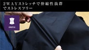 脇下を細くすることで犠牲になりがちな着心地を、ストレッチの効いた素材をセレクトする事で払拭。窮屈な想いをすることなく、ぽっちゃり体型でもスマートな着こなしを楽しんでいただくことが出来ます。