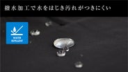 適度なハリ感とソフトな風合いを併せ持ったダブルクロス素材です。表裏で組織を変えており、裏面は凹凸があり、肌離れのいい組織にしてあるため着心地も非常に良いのです!