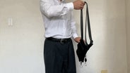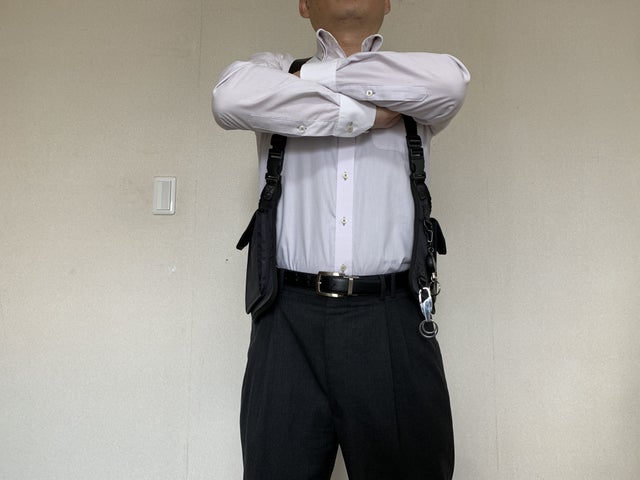 あとは、片腕ずつ首の後ろを通してこれで装着完了です!