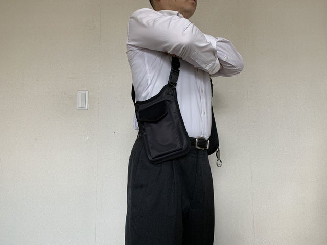 ・財布、スマホ、スマホ充電バッテリー、鍵、マイクロLED、ハンカチ、マスク、ボールペンなどの筆記用具、名刺入れ、手帳、たばこやライターなどが収納できて便利!