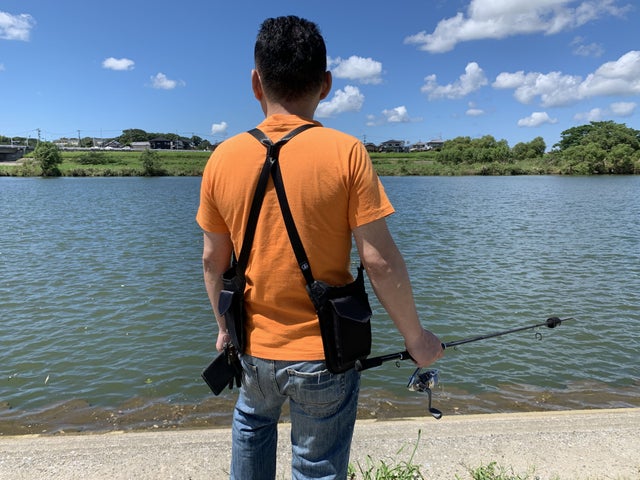 下のように左側にカラビナ付きのポケット、右側にカラビナのついていないポケットを置きます。