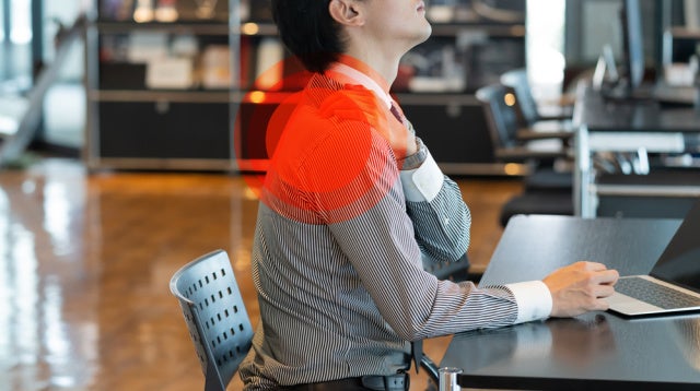 オフィスで業務をする時の間違った姿勢による『肩の負担』
