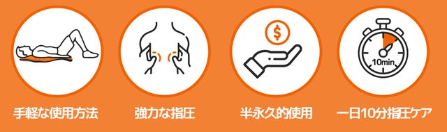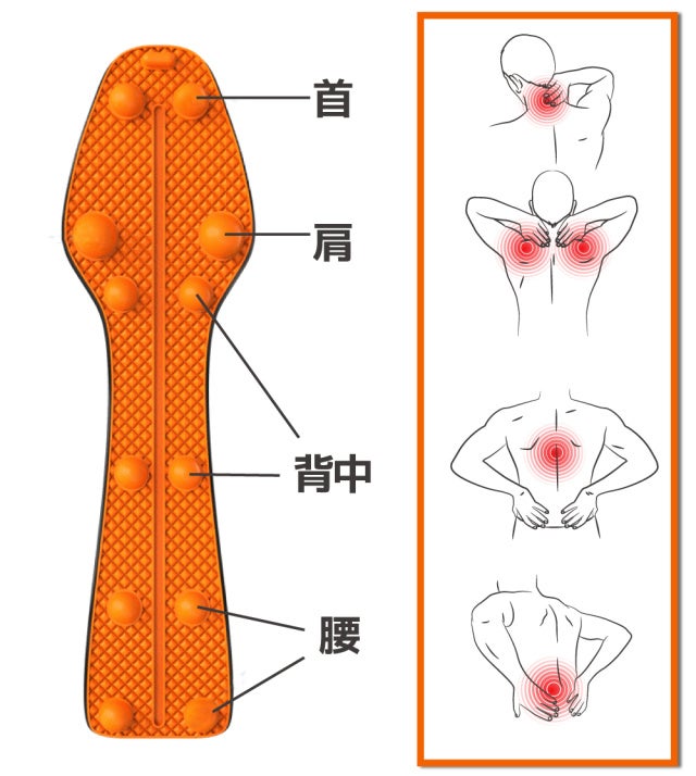 下部の6つの指圧ポイントで腰と背中を集中ケアします。