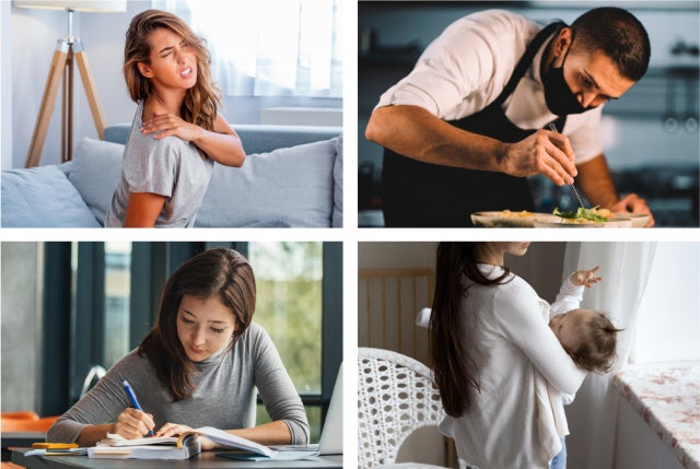 首を曲げた姿勢で料理をしたり勉強をする時、または長時間子供を抱いている時、