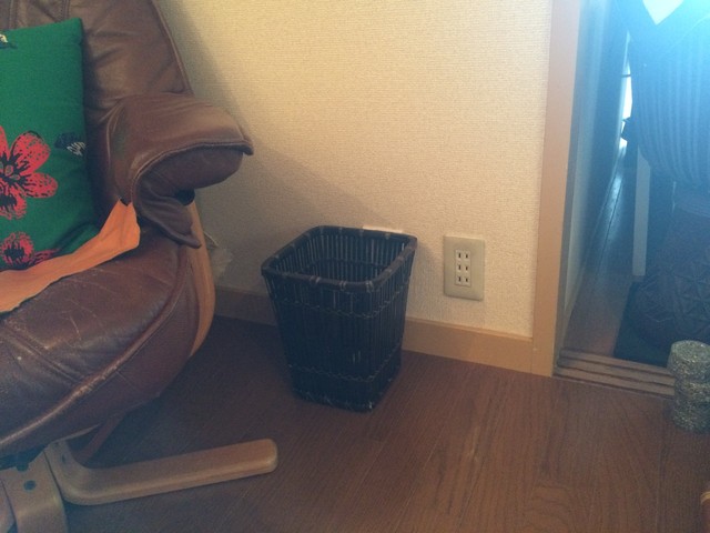 ゴミ箱で隠すなら、奥だけにして、でコンセントには!