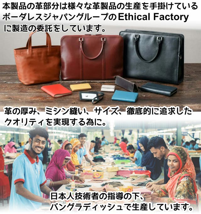 金属製接続具と革部品を編み上げて完成しますが、国内の職人様にお願いしております。本製品に使用されるDカン・尾錠等金属部品も国内で生産されたものを使用しています。