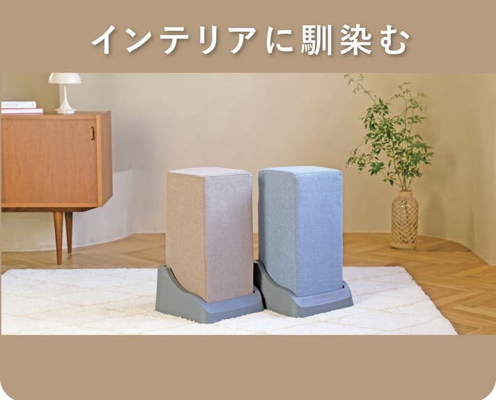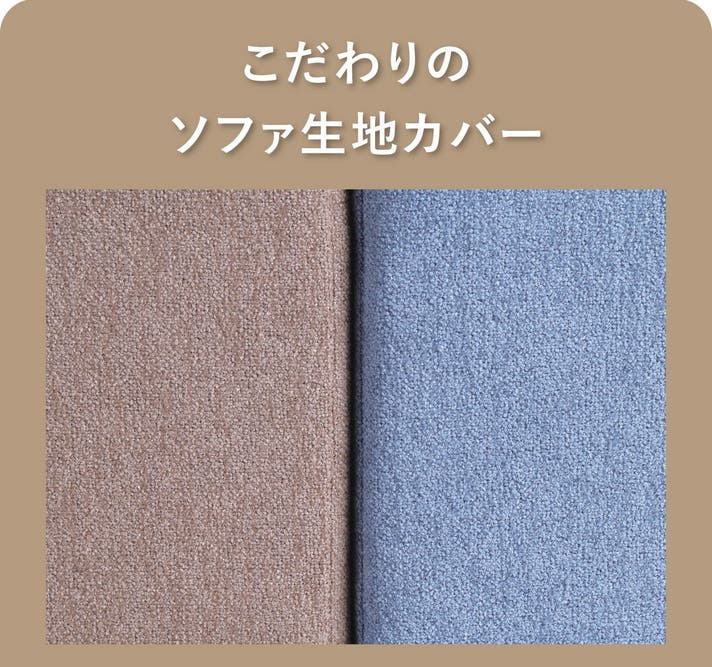 ポンポンスクワットのカバーは2色。インテリアにも溶け込むライトブラウンとライトブルーからお選び頂けます。生地はソファーに使われる柔らか味のある上質なファブリックを採用しました。