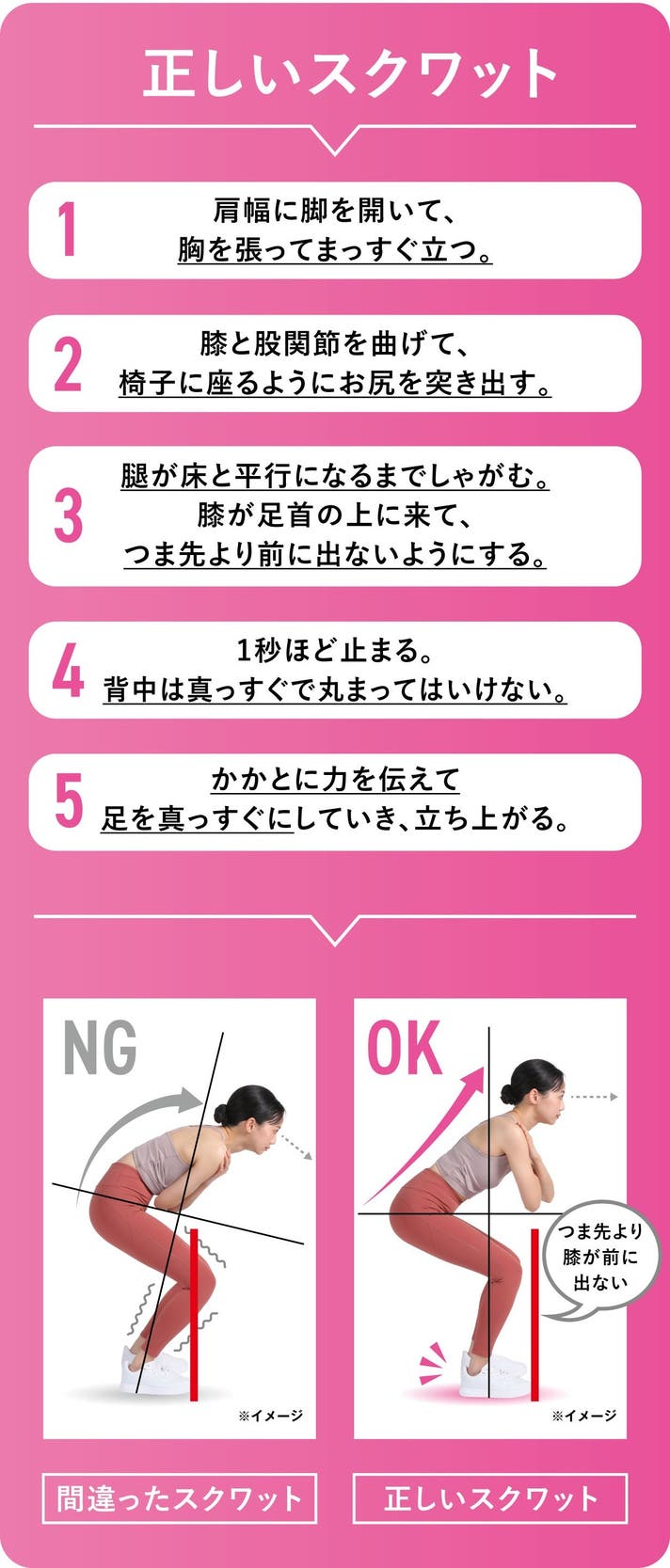 スクワット運動は、正しい方法でやらなければ腰やひざなどの関節を痛めてしまう危険があります。