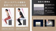 運動が苦手、めんどくさくて続かない、なかなか時間がとれない、といった方も、涼しいお部屋で毎日たったの30秒!気づいたときにさっとスクワット運動ができるから毎日の習慣にも!