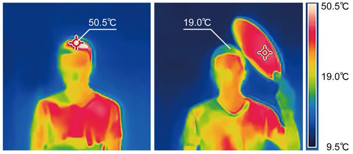 直射日光下でポントシェードにより頭部の温度が大幅に低下しました。