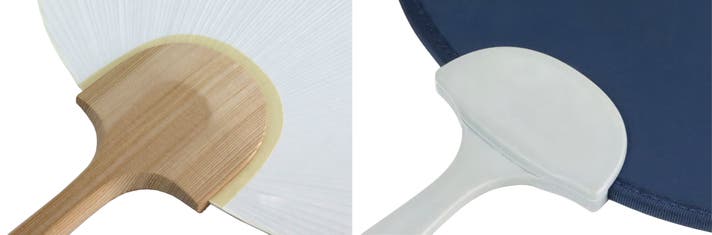 古き良きうちわのイメージを最新の素材で継承。持ち手は縁起が良く扇ぎやすい末広がりの銀杏の葉デザインを採用しました。