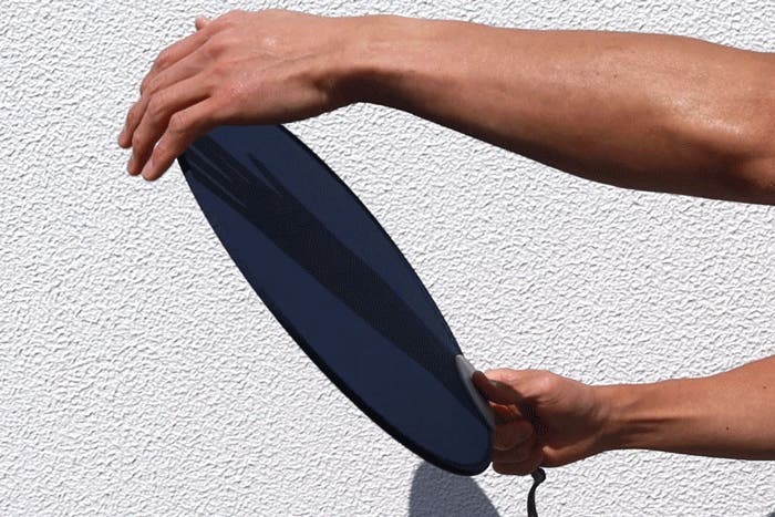 手首の動きを弾性エネルギーとして蓄え、扇ぐ瞬間のスピードを高めることで、少ない力でも力強い風を生み出します。