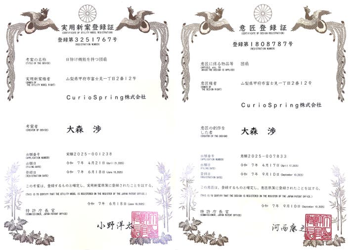 実用新案登録第3251767号 意匠登録第1808787号 登録済