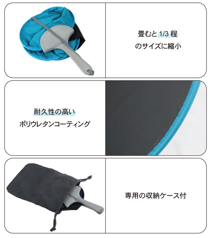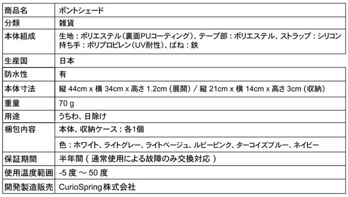- 一般的な日傘やおにぎりよりもはるかに軽い!70g厚さ3cmを達成。高品質焼入リボン鋼ばね採用!
