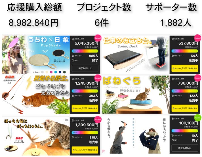 マクアケでは過去6回のプロジェクトを開催し大好評をいただいています。