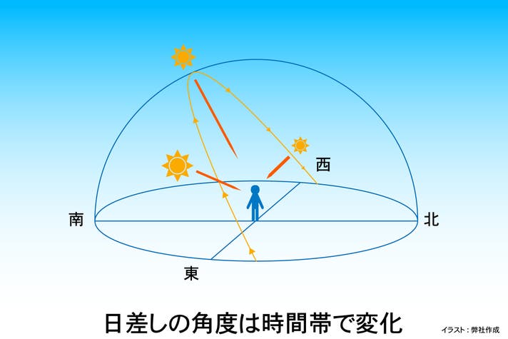 時間帯によって日差しの角度は変わるので、真上ではなく横から防ぐ方が効果的な場合があります。ポントシェードは特に日傘が苦手とする角度が低くて強烈な夏の西日に効果的です!