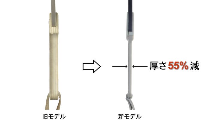 持ち手を木製から樹脂製にアップグレードして薄型化しました。