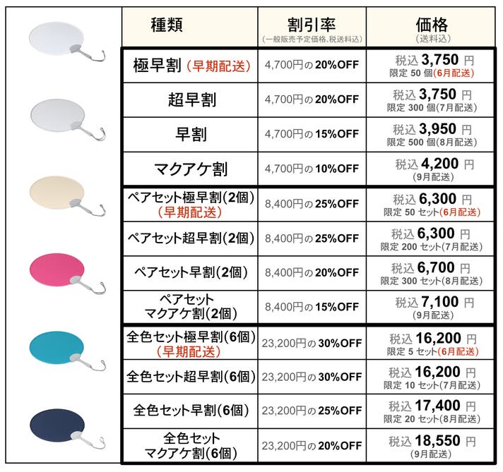早期配送【全色セット極早割30%OFF】ポントシェード 本体6個(送料込)