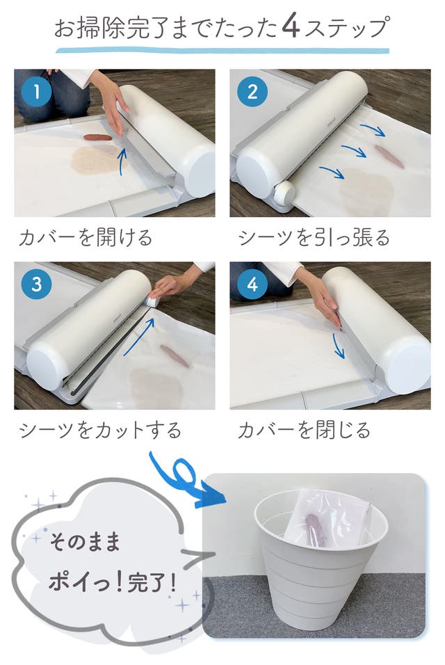 - 【3秒で完了】シートを引いてカットするだけ!そのままゴミ箱へ捨てるだけの簡単お掃除。