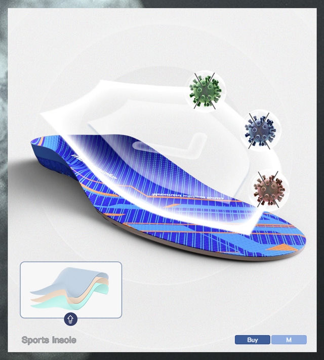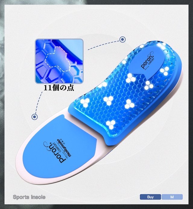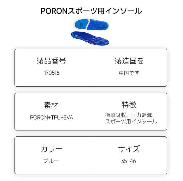 本製品は市場の一般的なインソールと違って、靴の中に入れるだけで、秒でカジュアルシューズからスポーツシューズに!全面的にPORON素材を活用しているため、アーチサポートは効果的で、衝撃を均一に吸収でき、傾き防止や安定した跳ね返りなどの効果があり、嫌なニオイを軽減することが期待できます!