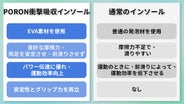 従来のインソール素材ではボールを落とすと、ボールが大きく跳ね、衝撃を吸収しきれずに、素材自体にもダメージがありました。