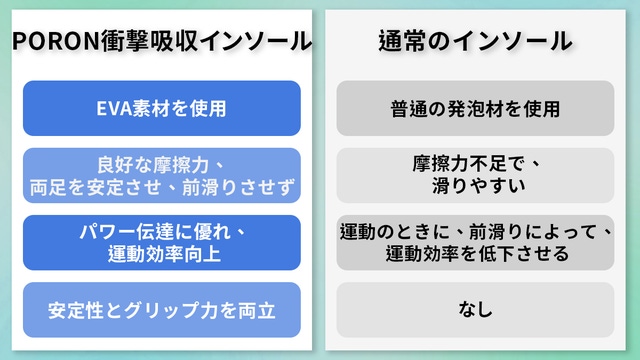 【PORON衝撃吸収インソール】は様々な靴で使用可能