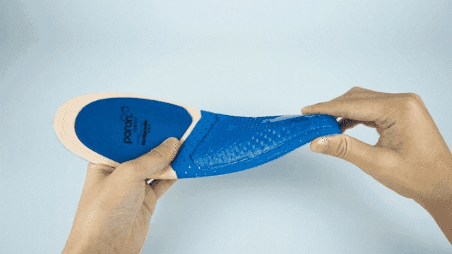 従来のインソールは一つの素材で作られて、良好的なサポート力と長時間的な衝撃吸収力を両立させることは非常に難しいから、履き心地が悪かったです。そのために、弊社では複数の素材を組み合わせ、この多機能付きのインソールを開発できました。柔軟性に優れ、足裏のアーチをサポートでき、長時間の使用でも足が全然くたびれません!