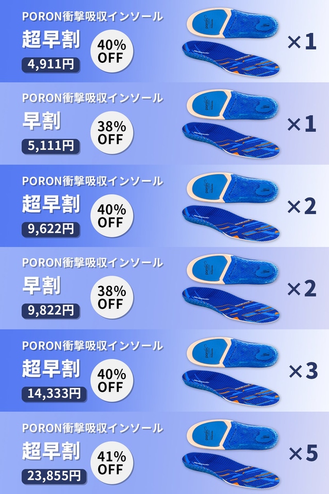 【超早割・超早割引41%OFF】PORON衝撃吸収インソール×5足