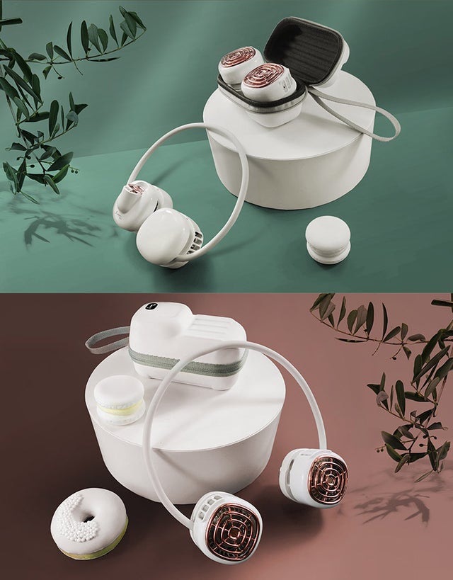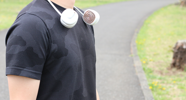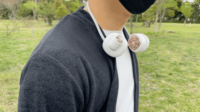 - 【デザイン】首から掛けてオシャレに見えるポータブル扇風機!
