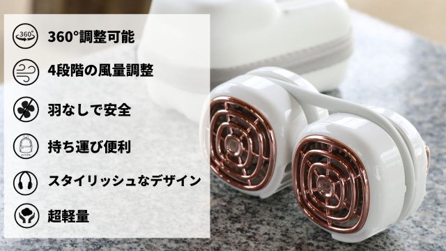 「ポータブル首掛け扇風機」は、両手が自由に使えるよう設計された、先端部分を360°自由自在に調整できる、コンパクトな携帯型扇風機です!マスクを着けて過ごす夏に大活躍します!