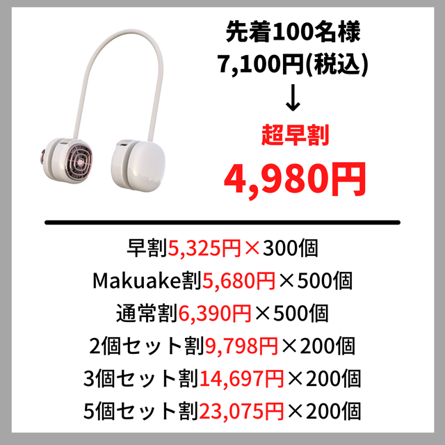 【Makuake割 先着500名】ポータブル首掛け扇風機