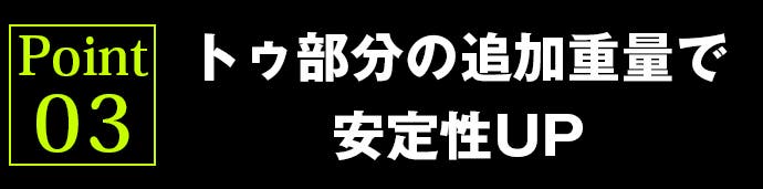 トゥ部分に加えた重量によりスイング時のバランスが向上。