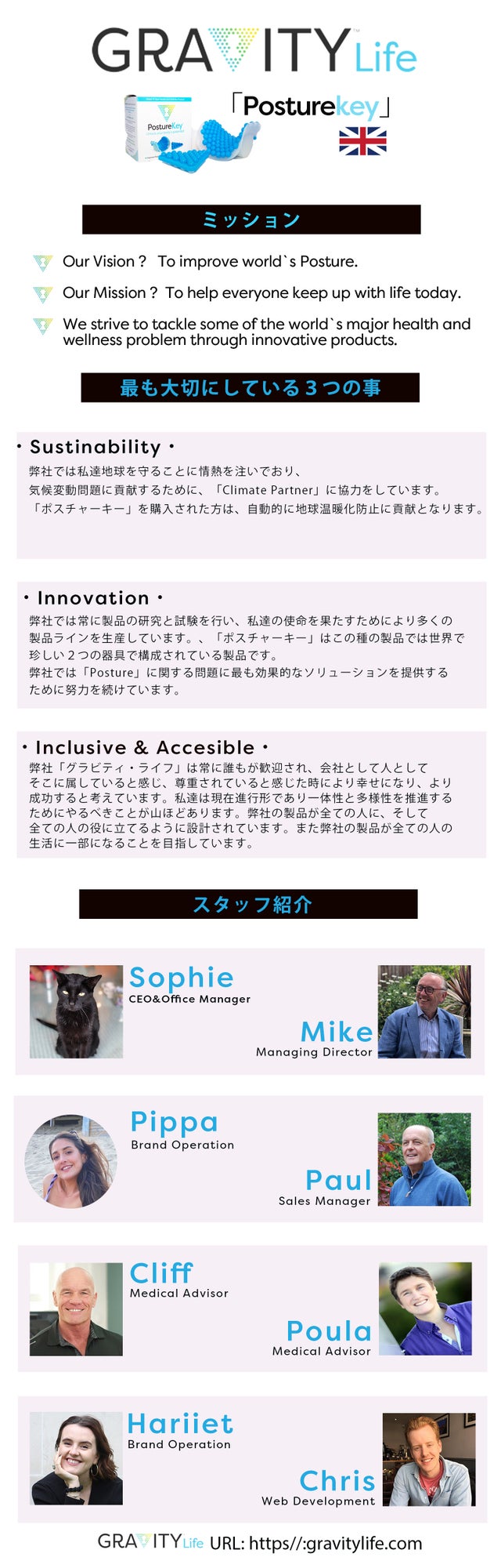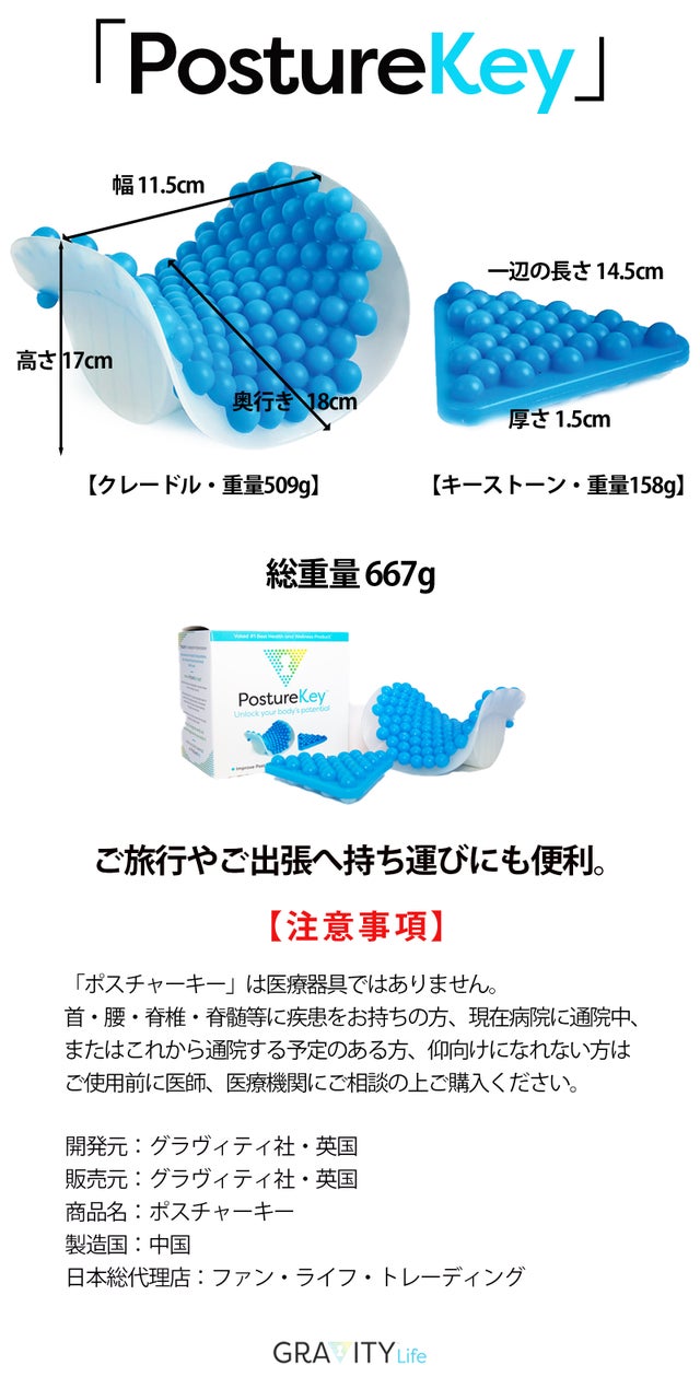 ・ご支援の数が想定より上回った場合、製造工程上の都合により出荷時期が遅れる場合がございます。 ・本プロジェクトを通して想定を上回るお客様からご支援を頂き、現在進めている環境から量産体制を更に整える事が出来た場合、正規販売価格が販売価格より下回る可能性もございます。 ・並行輸入品、類似品が発生する可能性があります。防ぐ事が出来ない可能性がある点、ご了承願います。 ・お客様がお使いのモニターによって色味が違って見える場合があります。 ・「ポスチャーキー」は健康器具であり、医療器具ではありません。 ・腰、首、脊椎、脊髄等に疾患をお持ちの方、現在病院に通院中の方、またはこれから通院予定のある方、 仰向けになれない方はご使用前に医師、医療機関にご相談頂いた上でご購入ください。 ※本文中に記載させていただいたスケジュールは、あくまでプロジェクト公開時点の予定です。応援購入の性質上、配送遅延のおそれがございます。 原則として、配送遅延に伴う応援購入のキャンセルはできませんが、リターン配送予定月から3ヵ月を超えた場合には、希望者に限りキャンセルにて対応させていただきます。 応援購入サービスの性質上、以上の注意点につきましてあらかじめご理解とご了承頂いた上でご支援くださいますようよろしくお願い申し上げます。