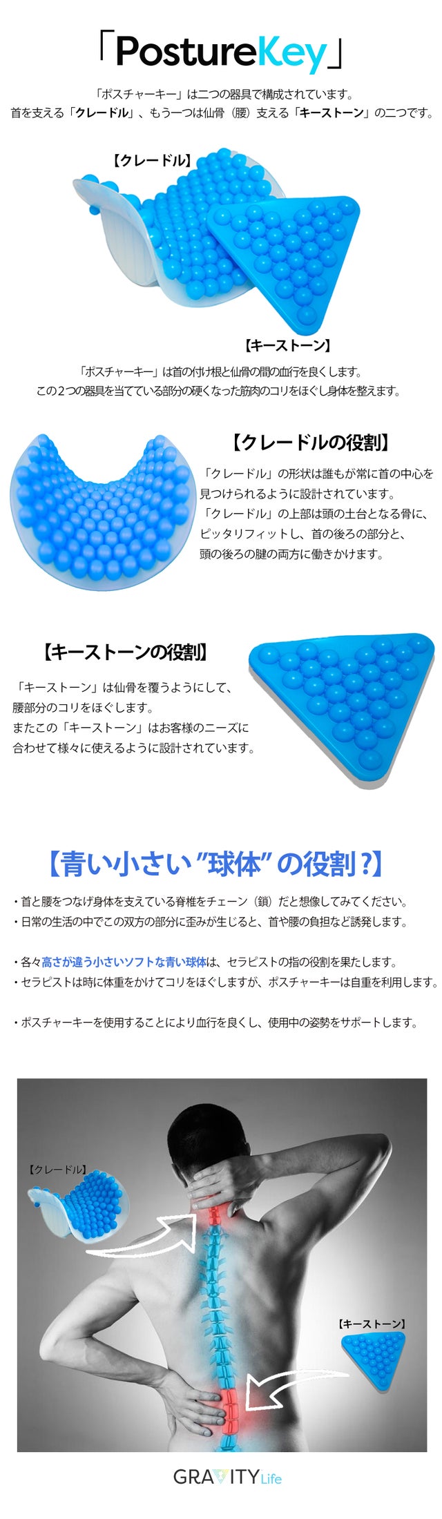 - 「腰」だけでなく「首」だけでなく、「Posturekey」は身体の中心2点からケア!