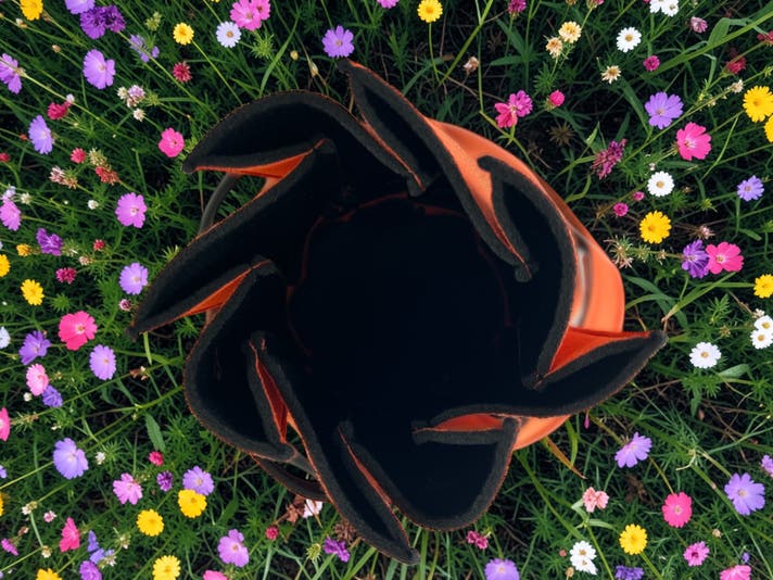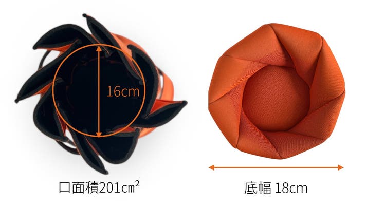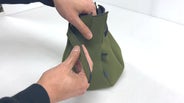 - 花のつぼみのように開く。日本の縫製技術と共創によって生み出された新発想の巾着ポーチ