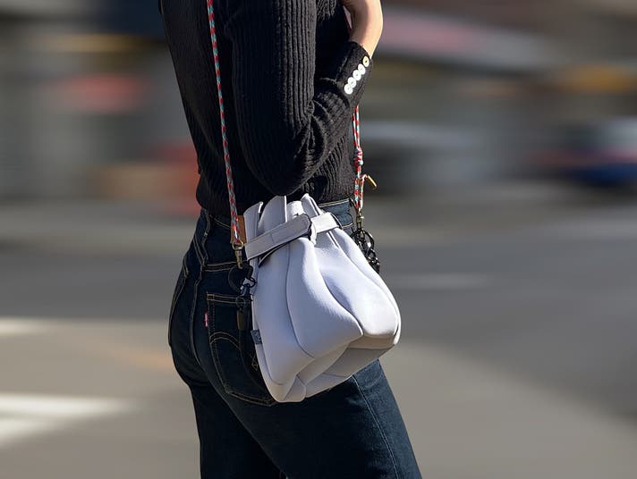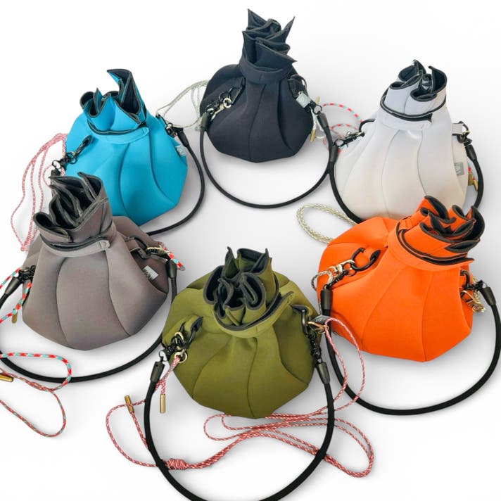 POUKULは、どこにもない構造と、花の蕾のような美しい動きを持つ巾着。