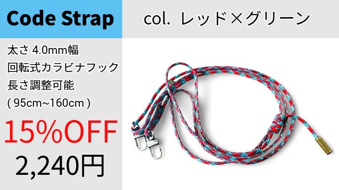 【CodeStrapLong】15%OFF 太さ4mm レッド×グリーン 1本