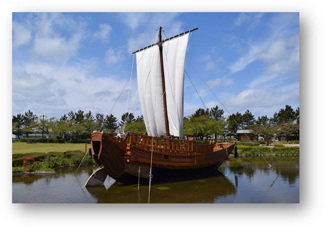 (日和山公園に復元された「北前船」在りし日の勇姿)