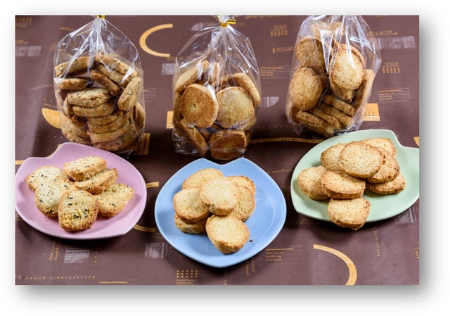 飽きずにパクパク食べてほしいのであっさりとした味にしました。塩味クッキーの塩は酒粕から作ったこだわりの塩を使用しています。