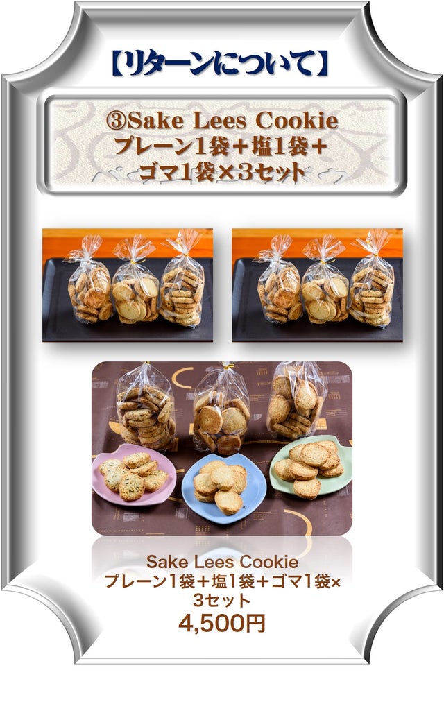 Sake Lees Cookie プレーン1袋+塩1袋+ ゴマ1袋×3セット