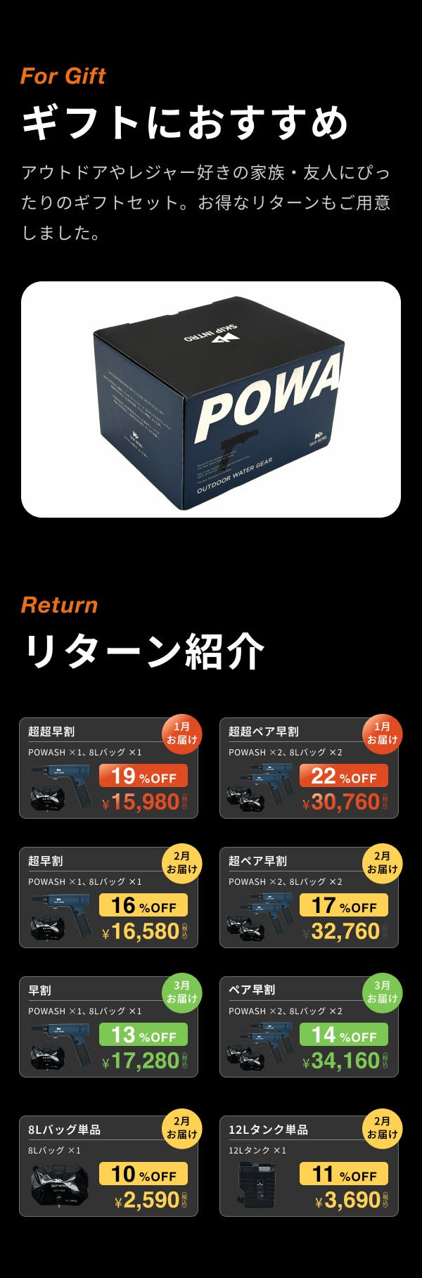 【3月お届け】ペア割 14%OFF(POWASH本体+8Lバッグ)2セット