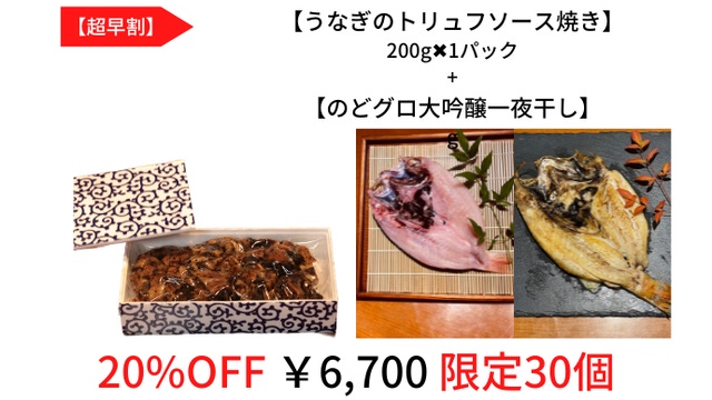 【超早割】限定30個 20%OFF うなぎのトリュフソース焼き(200g)+のどグロ大吟醸一夜干し(380g〜420g)