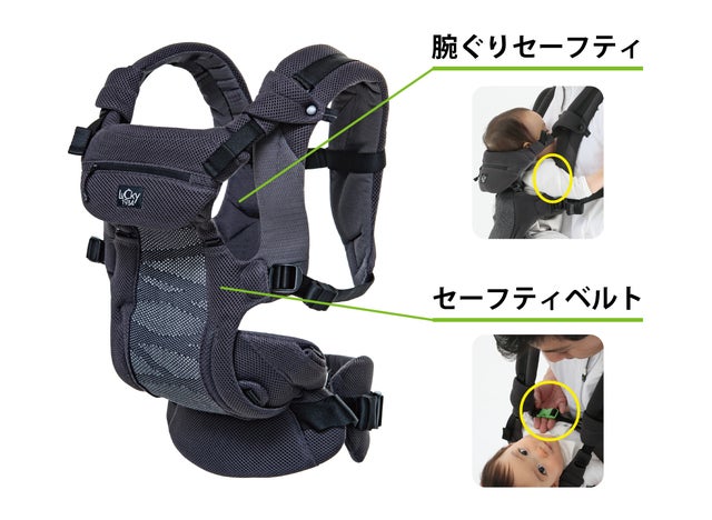 抱っこひもに慣れていないママ・パパも安心の、2重の安全設計。目の届かないおんぶも安心・安全に行えます。